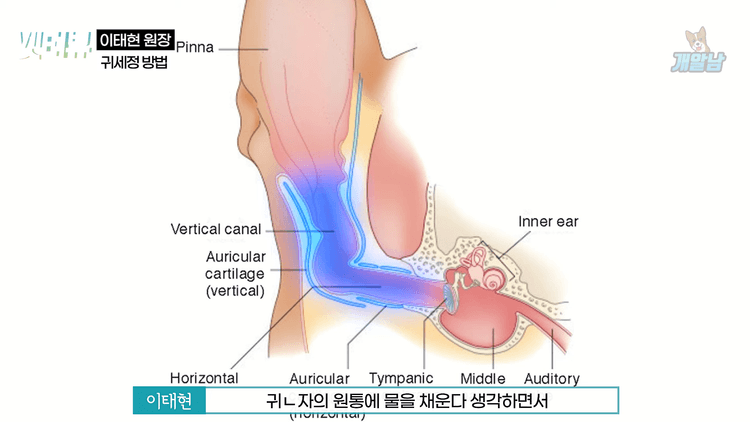 동물은 정말 귓병이 많습니다. 사람들은 수평 외이도밖에 없어서 면봉을 넣었다가 갑자기 짜릿할 때가 있지만, 우리 강아지들은 수직 외이도와 수평 외이도가 'ㄴ'자로 귀가 구성되어 있습니다. 수직 외이도가 있기 때문에 안쪽이 통풍이 잘 안 되는 구조로 되어 있습니다.