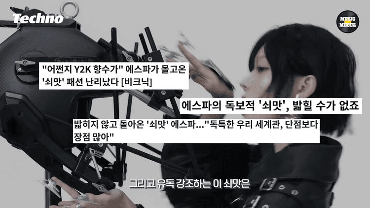 걸그룹 에스파가 Whiplash로 쇠 맛이 강하게 느껴지는 음악인 테크노 음악을 선보였는데요, 에스파가 선보이는 이 쇠 맛, 알고 들으면 더욱 매력적입니다. 테크놀로지에서 파생된 테크노는 그 이름처럼 기계적인 느낌이 강해서 이과적인 느낌을 주는 음악인데요, 에스파가 가져온 쇠 맛 테크노는 어떤 음악일까요?