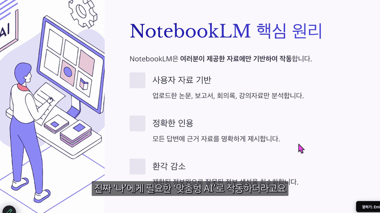 👉NotebookLM은 사용자가 올린 신뢰할 수 있는 자료를 기반으로 요약과 분석을 제공하는 AI 도구입니다.
