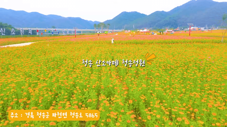 이번에는 대규모를 자랑하는 곳을 찾아가 보겠습니다. 바로 청송에 있는 산소카페 청송정원입니다. 이곳은 9월 중순부터 백일홍을 가득 찾아볼 수가 있는 곳인데, 무려 1억 송이나 되는 백일홍을 볼 수 있어서 정말 아름다운 풍경을 느낄 수가 있는 매력적인 곳입니다.