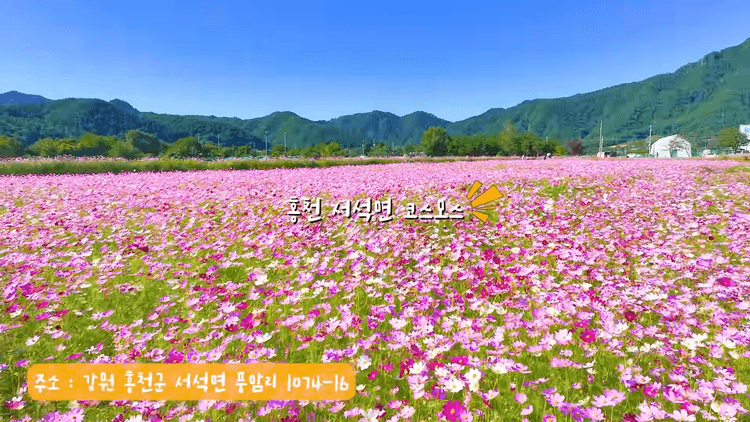 이번에는 조금 알려지지 않은 숨겨진 가을 명소를 소개해 드리겠습니다. 바로 홍천에 있는 서석면입니다. 홍천 서석면도 매년 가을에는 코스모스 축제를 열고 있는데 아직 많은 사람들이 모르는 곳 중 한 곳입니다.