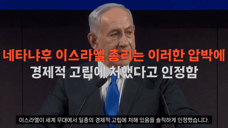 이스라엘의 외교적 고립은 더 심화하고 있습니다. BBC에서는 남아공의 아파르테이트 시절에 직면할 수 있다는 말도 보도하기도 했는데요. 네타냐후 이스라엘 총리는 9월 15일에 경제관계장관회의를 주재하는 자리에서 이스라엘이 세계 무대에서 일종의 경제적 고립에 처해 있음을 솔직하게 인정했습니다. 이는 처음이었습니다.
