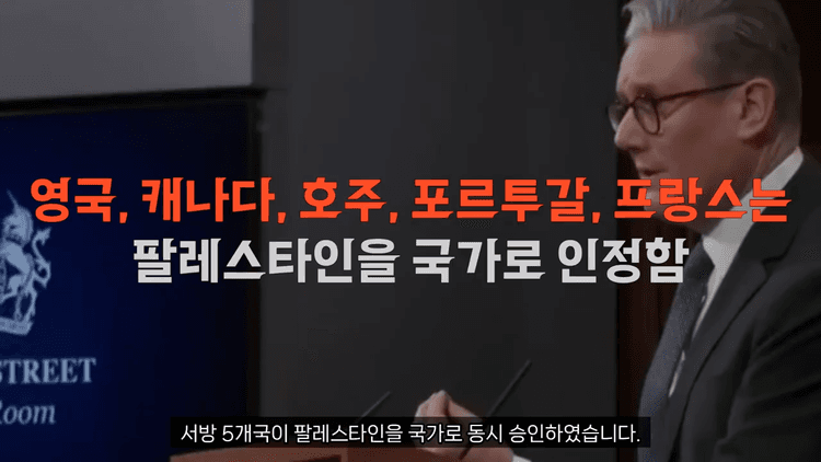 현지 시각으로 9월 21일에 영국, 캐나다, 호주, 포르투갈, 프랑스 등 서방 5개국이 팔레스타인을 국가로 동시에 승인하였습니다. 이에 대해 이스라엘은 격렬하게 반발하였는데요. 중동 정세가 크게 요동칠 것으로 전망되고 있습니다.