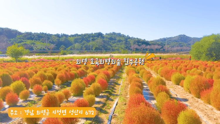 종합 가을 선물 세트를 볼 수 있는 의령 호국의병의숲 친수공원을 소개합니다. 이곳은 매년 가을 종합 선물 세트를 볼 수 있는 곳으로, 핑크뮬리부터 시작해서 댑사리, 아스타고카, 천일홍, 갈대 등 다양한 가을 풍경을 만날 수 있습니다.
