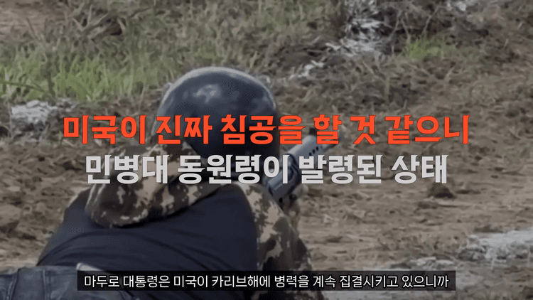 이렇다 보니 베네수엘라는 진짜 발등에 불이 떨어진 상황입니다. 올해 중으로 베네수엘라를 침공할 확률이 굉장히 높아진 상황인데, 현재 베네수엘라에는 민병대 동원령이 발령된 상태입니다. 마두로 대통령은 미국이 카리브해에 병력을 계속 집결시키고 있으니까 민병대 동원령을 내렸는데, 이 민병대들이 주로 노인으로 구성된 민병대입니다. 이 민병대들마저도 동원령을 선포하면서 준비하는 모습입니다.