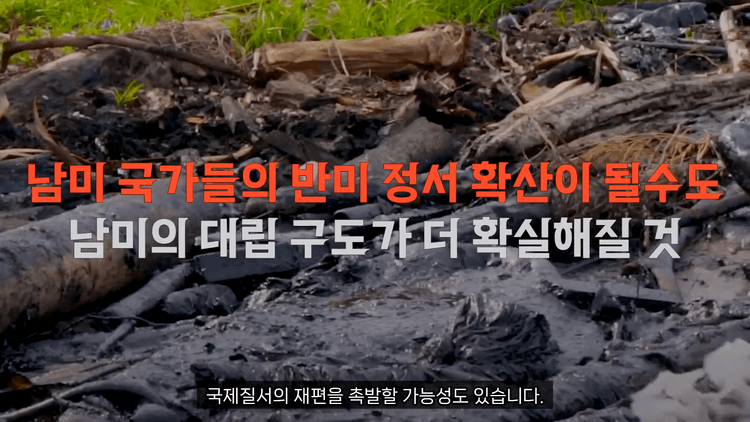 베네수엘라 사태는 단순히 경제적 파장을 넘어서 국제 질서의 재편을 촉발할 가능성이 있습니다. 남미 국가들 가운데 일부는 미국의 영향력에서 벗어나 러시아나 중국의 경제 지원을 택할 수 있고 그 결과 서방 대 남미 그리고 미중러의 대립 구도가 더욱 선명해질 수 있습니다.