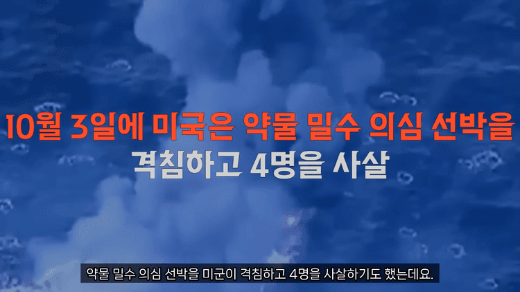 실제로 군사 행동을 한 곳도 있습니다. 현지 시각으로 10월 3일에 베네수엘라 인근 해상에서 약물 밀수 의심 선박을 미군이 격침하고 4명을 사살하기도 했습니다. 약물 밀수선을 겨냥한 무력 사용은 벌써 네 번째입니다. 물론 이 선박이 진짜 약물 밀수선인지 아닌지는 확인이 되지는 않았지만, 계속해서 약물 밀수 의심 선박을 공격하는 모습입니다. 미군은 벌써 21명을 사살했습니다.
