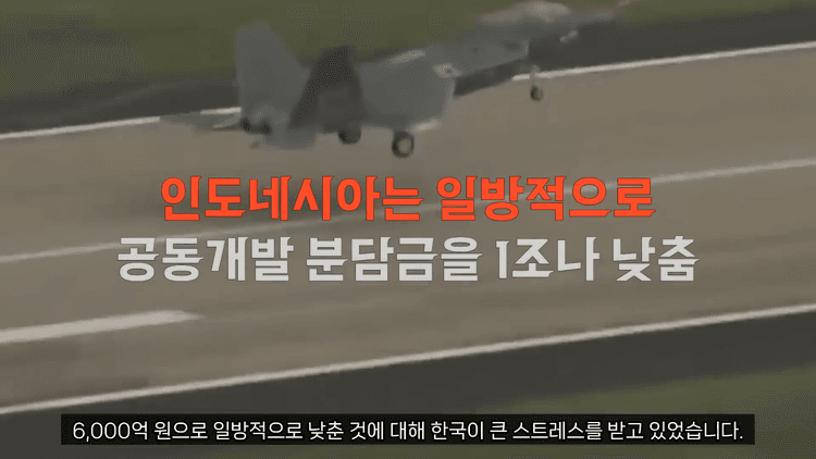 본래 2016년부터 인도네시아는 총 개발비의 20% 정도는 인도네시아가 내는 대신에 시제기 1대와 전투기 48대는 인도네시아에서 생산하기로 합의를 봤습니다. 그런데 인도네시아는 2024년 1월에 예산 부족 등을 이유로 분담금 지급을 중단했다가 작년 8월에 6천억 원만 내겠다고 일방적으로 통보했습니다.