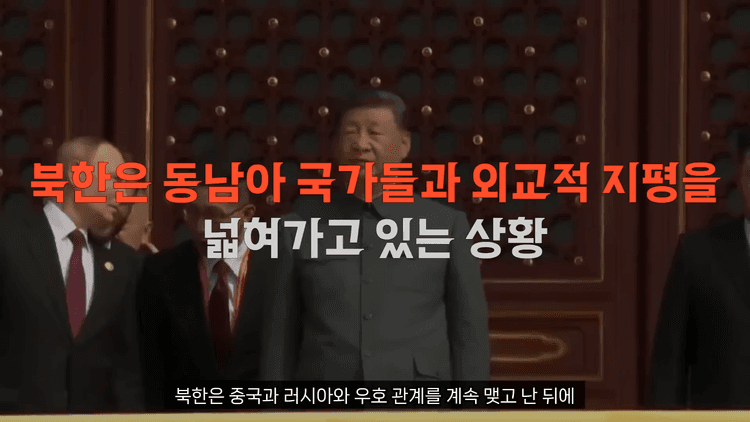 북한은 최근 들어 동남아시아 지역으로 외교적 지평을 넓히고 있습니다. 북한은 중국과 러시아와 우호 관계를 계속 맺고 난 뒤에 동남아시아 지역 국가들을 적극 포섭하고 있습니다. 북한은 외교적 고립을 탈피하는 것은 물론이고 국제사회에서 제재 무용론을 확산시켜 핵을 가진 정상 국가로 행세하기 위한 길 닦기 차원이라는 분석이 나오고 있습니다.
