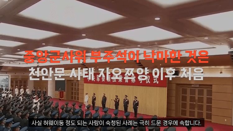 사실 허웨이둥 정도 되는 사람이 숙청된 사례는 그렇게 드문 경우에 속합니다. 중앙군사위원회 부주석이 낙마된 건 천안문 사태로 인해 사임을 강요당한 자오쯔양 정도입니다. 자오쯔양도 문민인 공산당 총서기 역할의 연장선상에서 부주석 자리를 맡았을 뿐 군 출신 부주석이라고 보기는 어렵습니다. 그런데 군 출신 부주석이 낙마한 것이기 때문에 사실상 마오쩌둥 이후로 처음인 사례입니다.