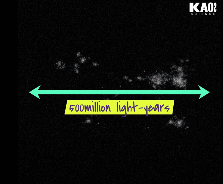 시간이 흘러 우주가 커짐에 따라 물질이 살짝 더 몰려 있었던 영역은 주변의 물질을 끌어당겨 덩치를 키워 나갑니다. 반대로 물질이 살짝 덜 몰려 있던 영역은 원래 갖고 있던 물질마저 주변에 뺏깁니다. 태초에 뿌려진 불균일성이라는 씨앗은 크고 작은 규모의 천체와 빈 공간, 즉 우주 구조물로 자라나게 됩니다.