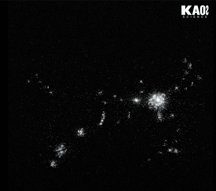 그래서 개개의 은하는 망망대해와 같은 우주의 빈 공간에 외롭게 떠 있는 별들의 섬 같습니다. 하지만 크게 보면 은하는 서로 모여서 더 큰 구조를 이룹니다. 그물 혹은 거품을 닮은 이 거대한 구조를 우주 거대 구조라 합니다. 거미줄을 닮아 우주 거미줄이라고도 합니다.