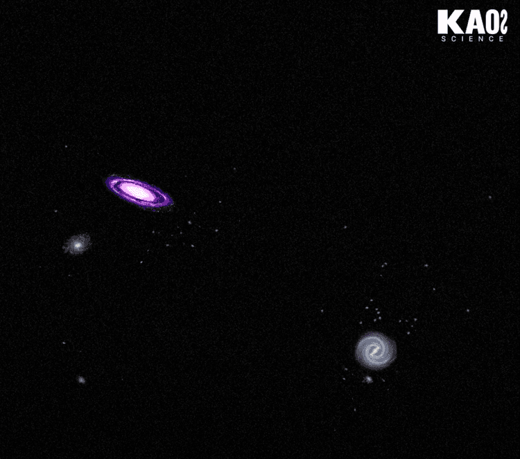 우리 은하와 안드로메다 은하는 중력으로 서로 잡아당기고 있으며 초속 110킬로미터의 속도로 가까워지고 있습니다. 약 40억 년 뒤에 두 은하는 충돌해 하나의 은하가 될 운명입니다. 우리 은하와 안드로메다 은하를 포함해 그 주변에 있는 수십여 개의 작은 은하 무리를 국부 은하군이라고 합니다. 국부 은하군의 지름은 약 천만 광년입니다.