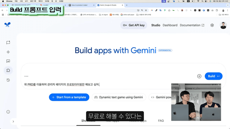 AI 스튜디오 빌드 기능으로 첫 프로토타입 제작