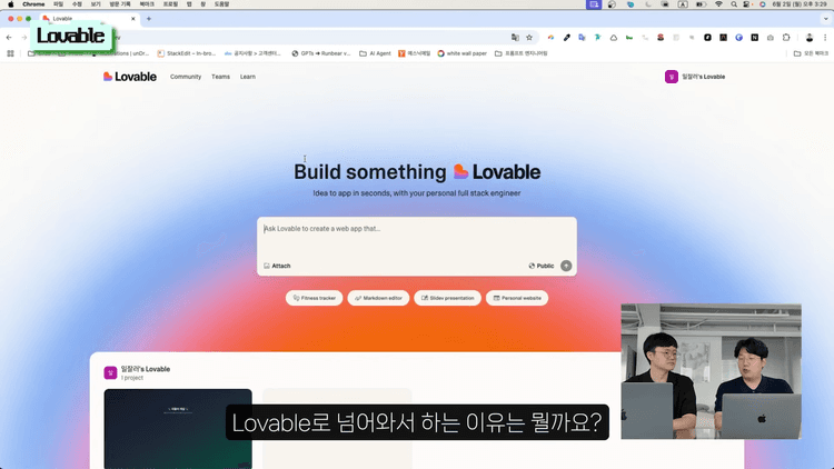 러버블의 좋은 점은 제안을 해준다는 것입니다. 슈퍼베이스 붙일까요? 이런 걸 제안을 해줘서 뭘 해야 되는지 모르는 비개발자 입장에서는 편했습니다. 커서가 바이브 코딩 툴로 유명한데 커서 대비해서 바이브이 더 쉽게 시작할 수 있는 게 러버블이라고 할 수 있습니다. 하지만 아무래도 커서가 훨씬 더 통제하기 쉽고 더 기능이 풍부하기 때문에 커서로 하는 분도 많습니다.