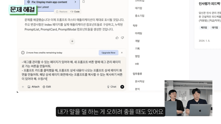 바이브 코딩이라는 걸 가지고 내가 가지고 있는 아이디어를 제품화할 수 있다는 거에 대해서 직접 경험해 보니까 정말 신기했습니다. 사람들이 말했을 때는 이 정도 될 거라는 걸 이미 들었기 때문에 당연하겠다고 생각했지만, 막상 해보니까 정말 감동이 있었습니다. 노코드 도구로 이런 기본적인 디렉토리 페이지를 많이 만들어 봤는데 꽤 힘든 일이었는데, 이 과정이 이렇게 쉽게 된다는 게 너무나 놀라웠습니다.