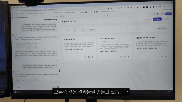 러버블(Lovable)로 넘어가 더 세련된 UI와 데이터베이스 연동까지 구현하며 완성도를 높였다.
