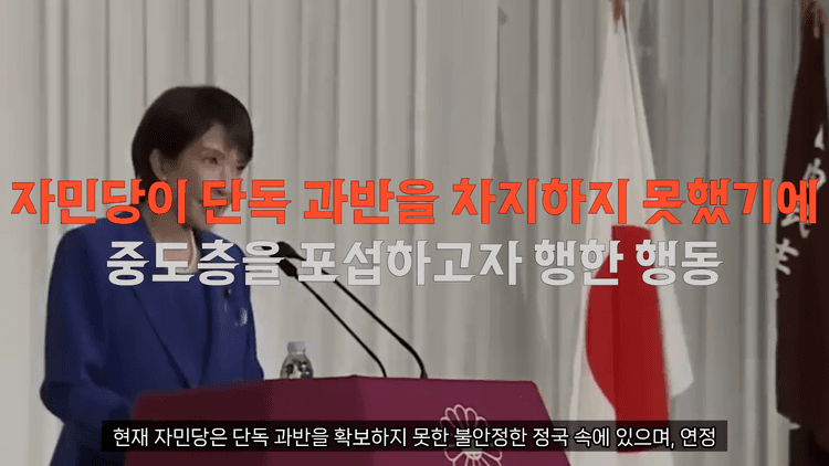 전문가들은 이러한 변화가 단순한 이미지 세탁이 아니라 정권 운영을 위한 필수적인 전략적 선택으로 보고 있습니다. 현재 자민당은 단독 과반을 확보하지 못한 불안정한 전국 속에 있으며, 연정 파트너였던 공명당의 이탈로 중도층의 지지가 절실한 상황입니다. 다카이치가 이들의 반감을 최소화하려고 일부러 강경 행보를 자제하고 있다는 분석이 설득력을 얻고 있습니다.