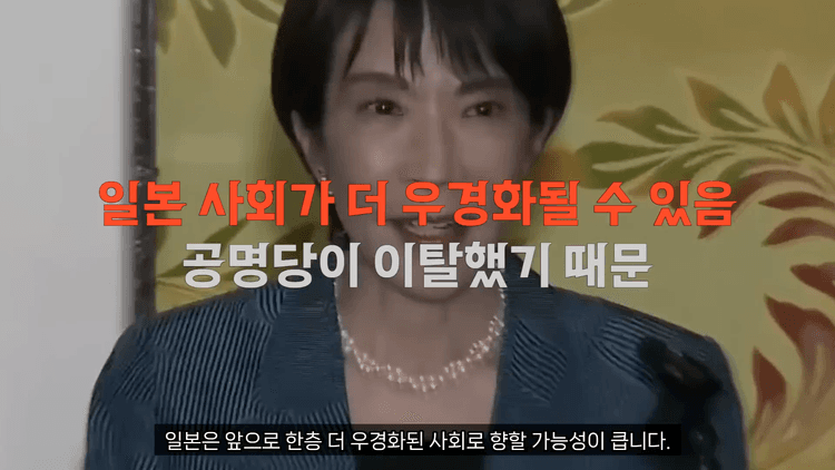 한편 일본 사회 내부에서도 이러한 변화에 대한 우려의 목소리가 나옵니다. 일본의 중도 진보진영은 공명당의 이탈로 자민당이 더 이상 제동 장치를 잃었다고 평가하고 있으며, 정치적 견제가 사라진 상태에서 국가 운영이 이념 중심으로 치우칠 가능성을 경고하고 있습니다.