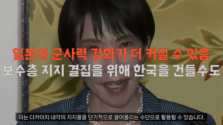 특히 독도, 위안부, 강제징용 등 과거사 관련 이슈에서 한국과의 갈등이 다시 불어날 여지가 크며, 이는 다카이치 내각의 지지율을 단기적으로 끌어올리는 수단으로 활용될 수 있습니다.