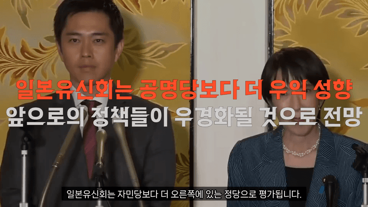 공명당은 불교계 기반의 중도 보수정당으로 외국인 혐오 같은 극단적인 정책에 제동을 걸어왔던 존재였습니다. 그러나 다카이치가 총재로 당선되면서 공명당이 연정을 이탈하고 대신 더 강경한 성향의 일본 유신회와 손을 잡게 되자 상황이 완전히 달라졌습니다.