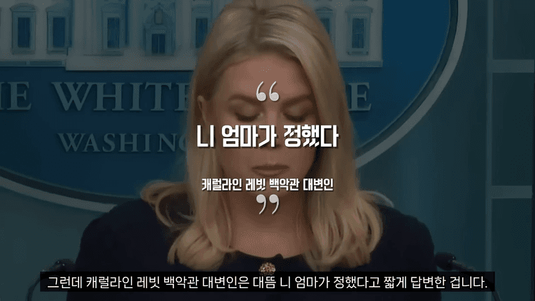 그런데 캐롤라인 레빗 백악관 대변인은 "네 엄마가 정했다"고 짧게 답변한 겁니다. 백악관 대변인이 기자에게 패드립을 박아버린 것입니다.
