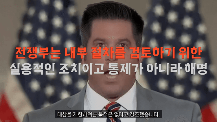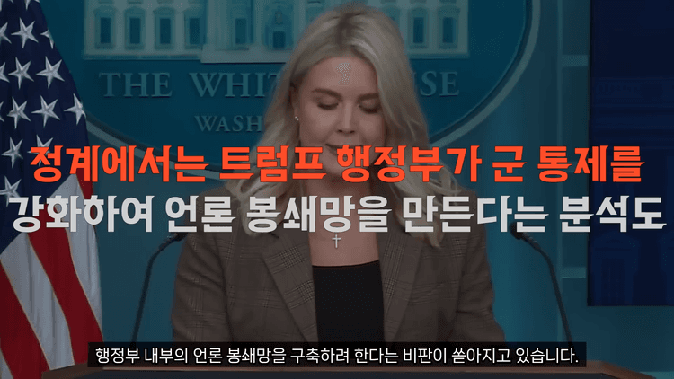 이러한 조치가 이어지자 워싱턴 정계에서는 트럼프 행정부가 사실상 군 통제를 강화해 행정부 내부의 언론 봉쇄망을 구축하려 한다는 비판이 쏟아지고 있습니다.