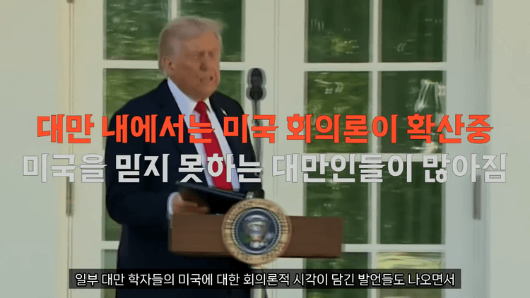 일부 대만 학자들의 미국에 대한 회의론적 시각이 담긴 발언들도 나오면서 대만 내에서는 미국 회의론이 뜨거운 감자로 오르고 있습니다. 이러한 미국 회의론이 너무 커지다 보니 대만 정부에서는 이러한 미국 회의론에 대해서 면밀하게 주의를 기울이고 있다고 합니다.