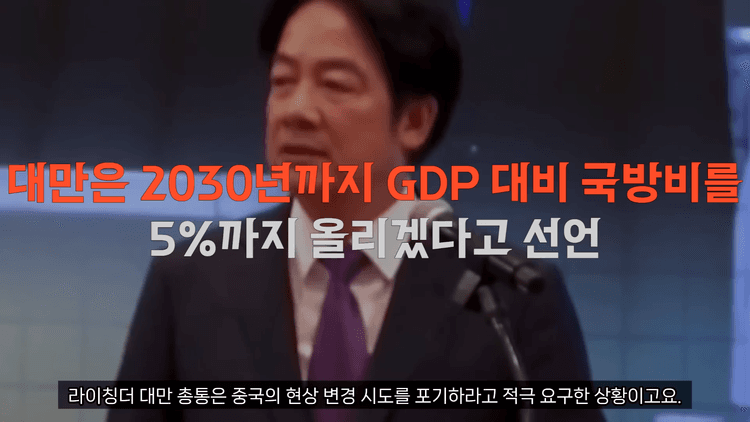 당장 대만 국방비는 나토 기준에 따라 내년에 GDP의 3%를 넘어설 예정입니다. 내년 국방 예산은 GDP의 3.32%가 될 예정인데, 이는 2009년 이후 처음으로 3%를 넘는 수치이고 총액 기준으로는 지난해 대비 23% 증가한 규모입니다. 트럼프 행정부의 지속적인 방위비 증액 요구와 중국의 군사적 압박 속에서 나온 결과입니다. 또 첨단 기술과 AI 기술 도입 결합을 강화해 지능형 방어 전투 시스템을 구축하고 비대칭 전략의 억제 효과를 발휘시키겠다고 밝힌 바가 있기도 합니다.